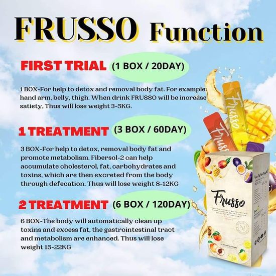 Generally, FRUSSO will 【absorb FATS】within 8 hours after taking it 😍 And after 2 weeks, you will see result especially on the belly, thighs, and arms, then the rest of your body part will all become slimmer and toned 😍😍 -
