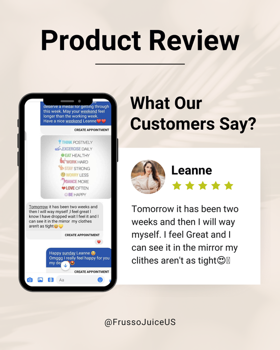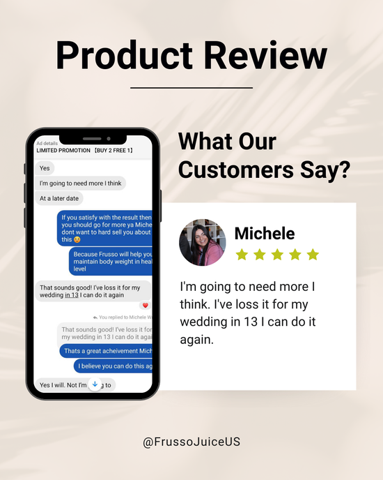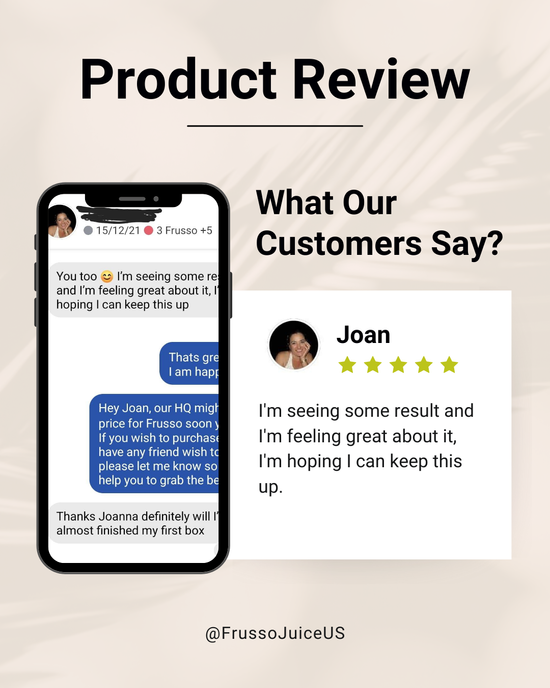 I would say. If you are unhappy with your health, life and appearance. Make a change and try Frusso Juice. Of course we all have moments when we fall off the wagon. The important thing is that we are a community and we’re here to support each other with our journeys. Everyone has a similar story. Have a break if you have to, but never give up.Buy Now -