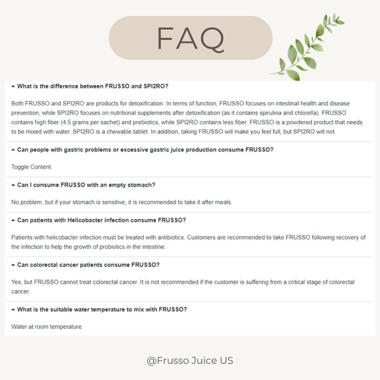 FRUSSO comprises all-natural, raw ingredients combined to give you a powerful detox solution. -
